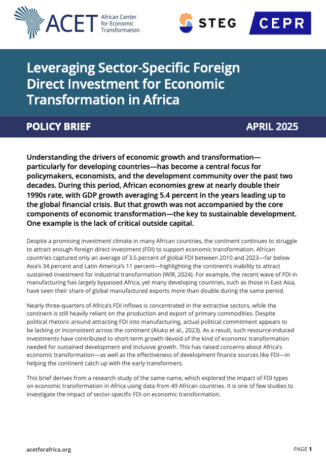 Richmond Commodore, ACET Senior Economist, sheds light on the thinking behind the Country Economic Transformation Outlook (CETO)—a structured yet adaptable framework guiding African countries on their transformation journeys. While many […]