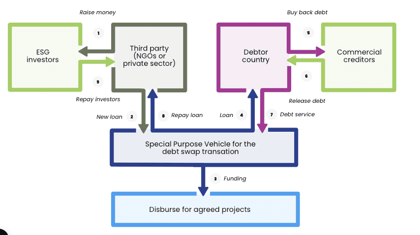 Climate Action Network. (2023, May). Climate Action Network Position on Debt Swaps. https://climatenetwork.org/wp-content/uploads/2023/06/CAN-position-on-Debt-Swaps_May-2023.pdf